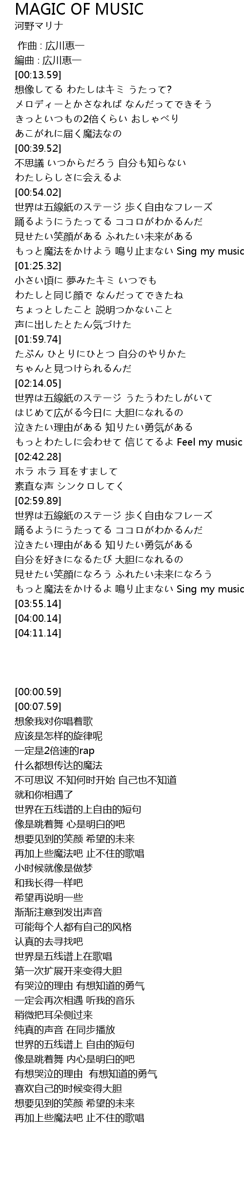 | [00:21.33] | メロディーとかさなれば なんだってできそう |