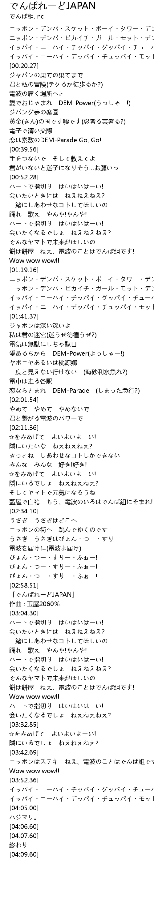 | [03:00.30] | 「でんぱれーどJAPAN」 |