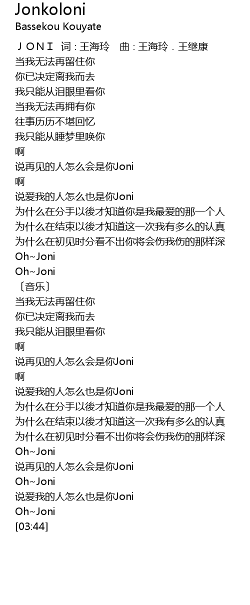 | [00:00] | JONI 词∶王海玲 曲∶王海玲.王继康 |