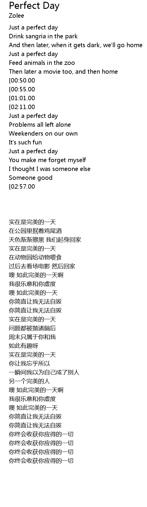 [01:57.00][00:50.00] Oh it's such a perfect day