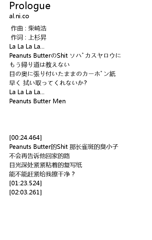 | [00:48.293] | Peanuts ButterのShit ソバカスヤロウに |