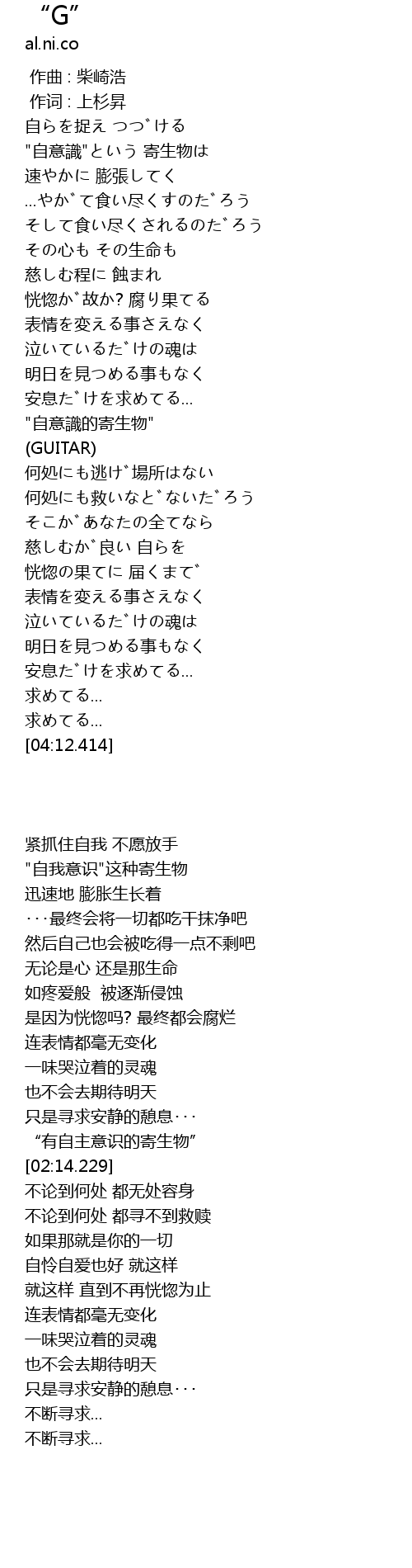 | [02:04.930] | " zì yì shí de jì shēng wù" |