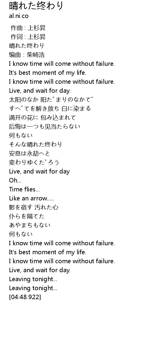 | [00:03.544] | 晴れた终わり |