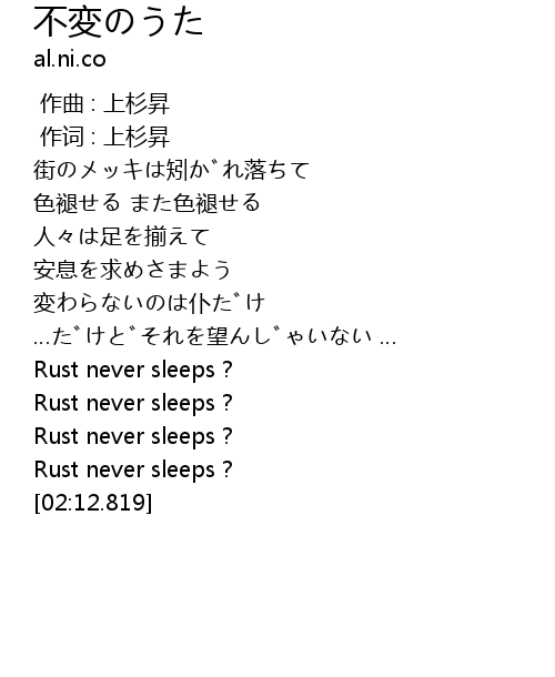 | [00:12.589] | 街のメッキは矧がれ落ちて |
