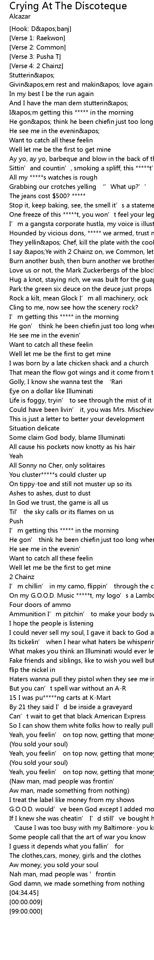 | [02:32.87] | I’m getting this ***** in the morning |