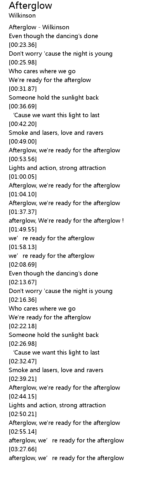 | [02:50.89] | Afterglow, we' re ready for the afterglow |