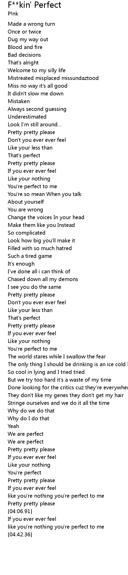 | [01:20.88] | You're perfect to me |