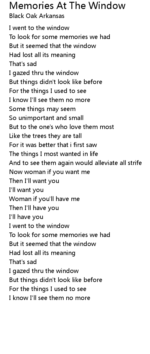 Memories At The Window Lyrics
