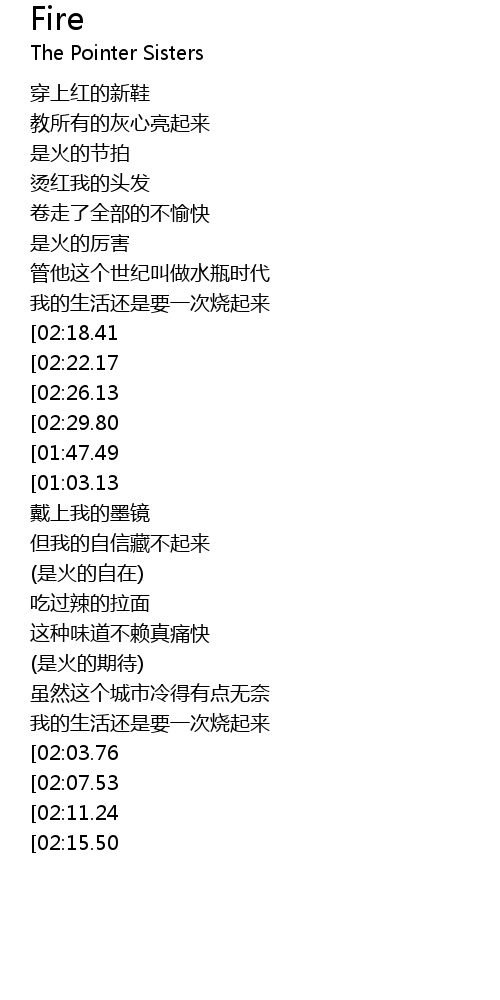 | [02:50.51][02:03.76] | rè guò cái zhī dào hǎo huǒ |