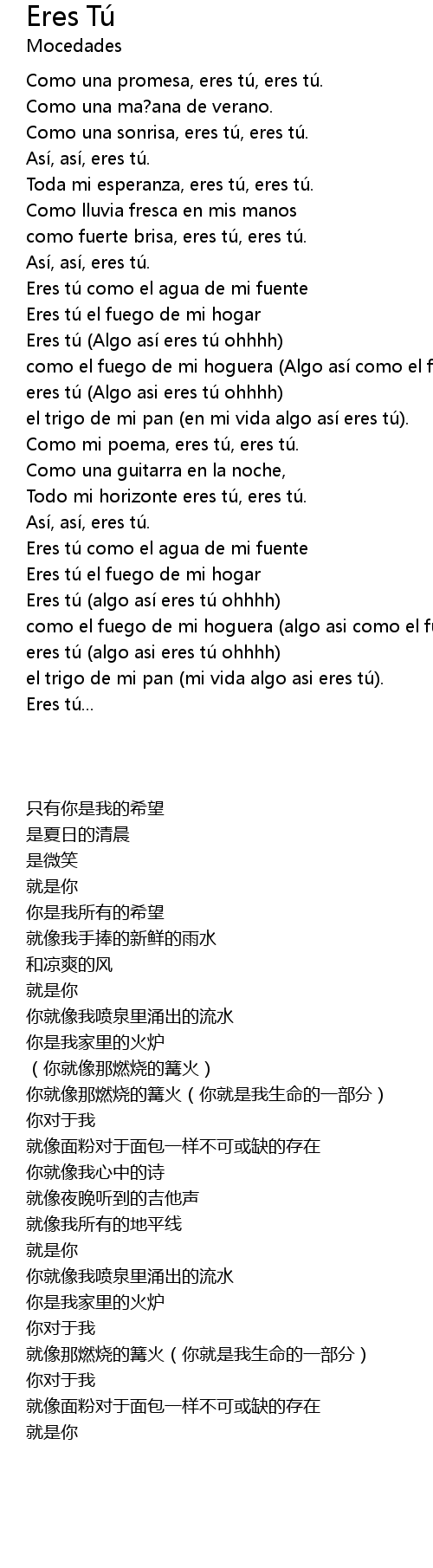 | [01:36.98] | eres tú (Algo asi eres tú ohhhh) |