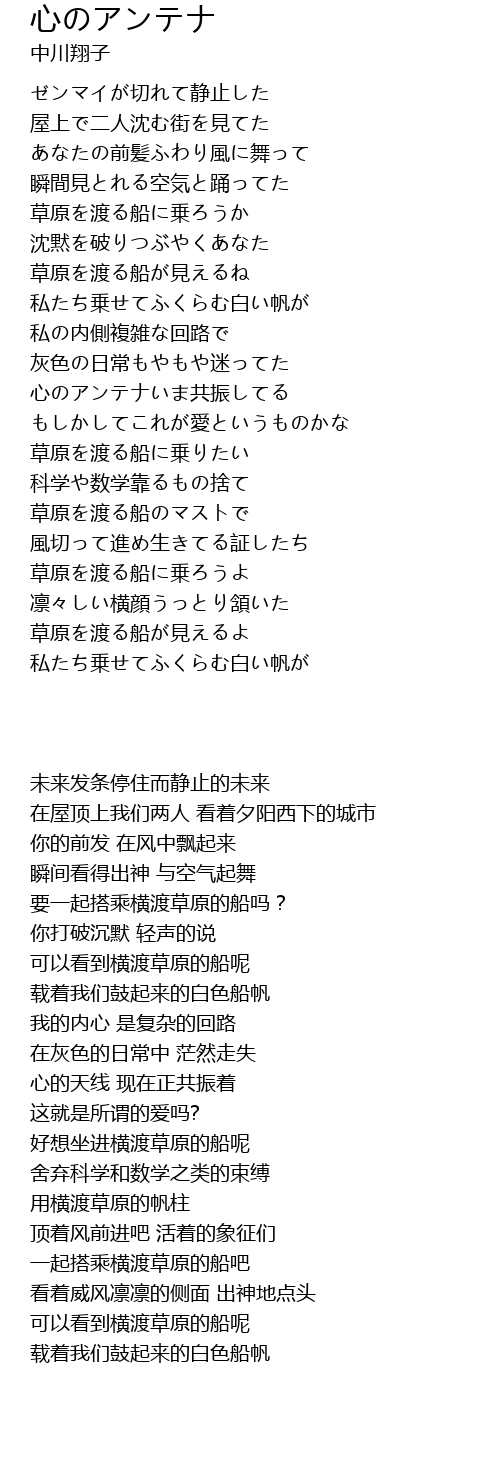 | [02:36.160] | 草原を渡る船に乗りたい |