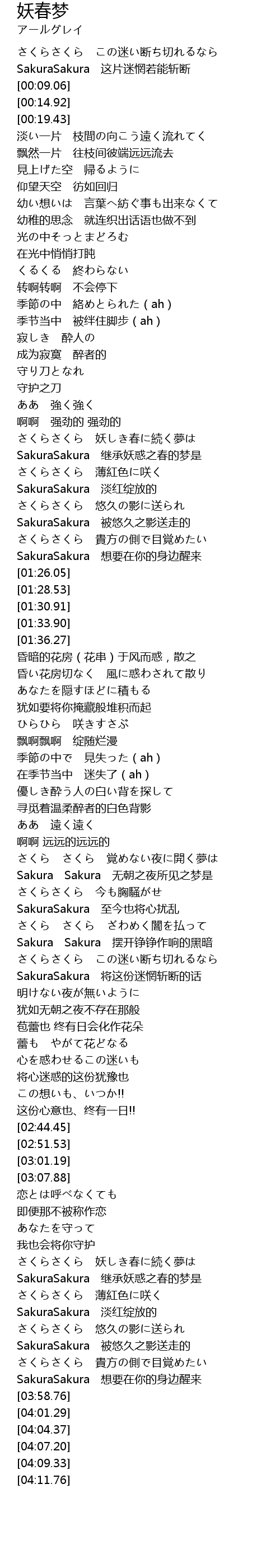 | [03:33.45] | SakuraSakura jì chéng yāo huò zhī chūn de mèng shì |
