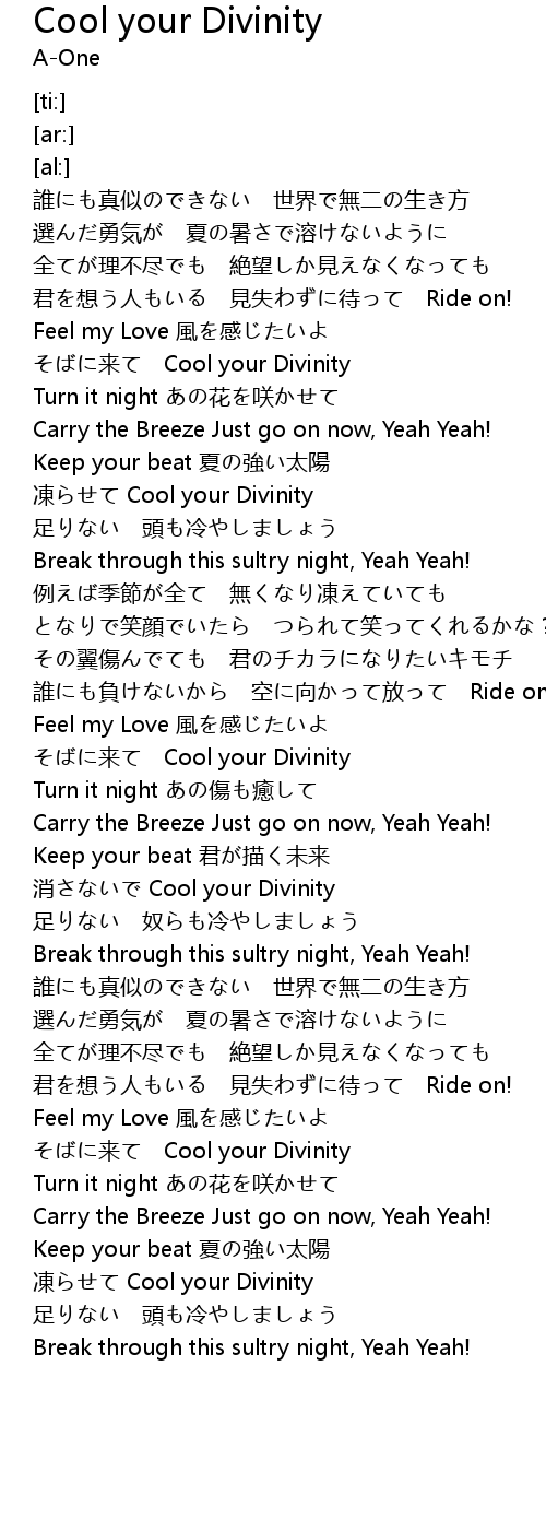 | [01:17.63] | 凍らせて Cool your Divinity |