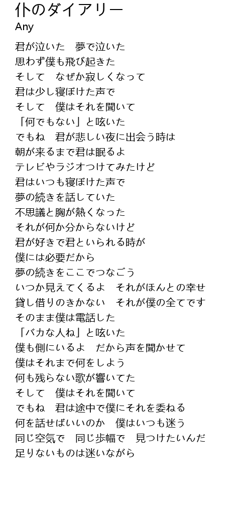 | [01:04.55] | 僕も側にいるよ だから声を聞かせて |