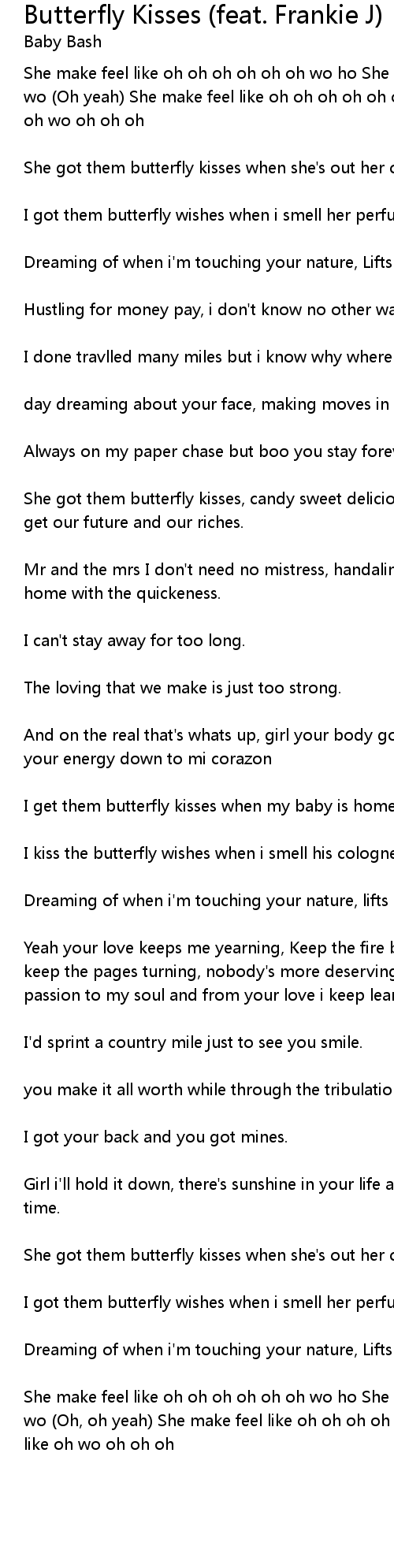 She got them butterfly kisses, candy sweet delicious, out here on my grind tryna get our future and our riches. |