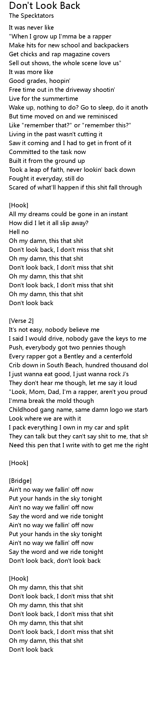 Don't look back, don't look back |