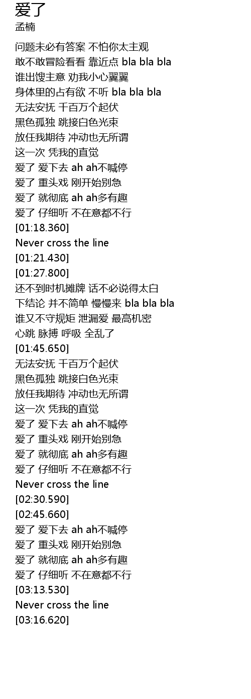 | [01:38.300] | 谁又不守规矩 泄漏爱 最高机密 |