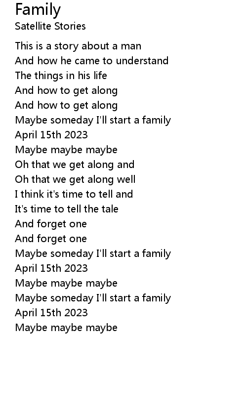 | Maybe someday I'll start a family | |