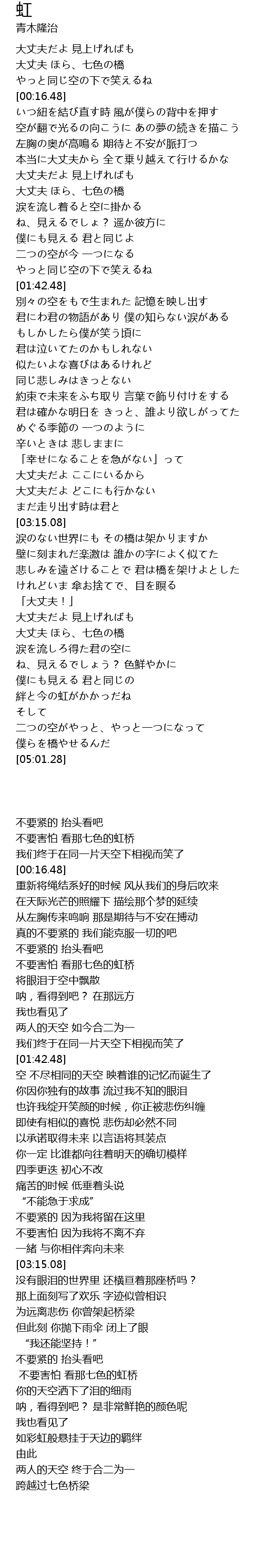 | [00:04.00] | 大丈夫 ほら、七色の橋 |