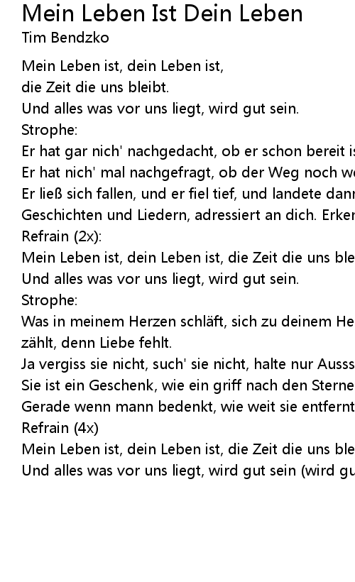 | Mein Leben ist, dein Leben ist, die Zeit die uns bleibt. | |