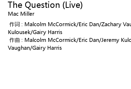 | [00:00.000] | 作曲 : Malcolm McCormick/Eric Dan/Jeremy Kulousek/Zachary Vaughan/Gairy Harris |