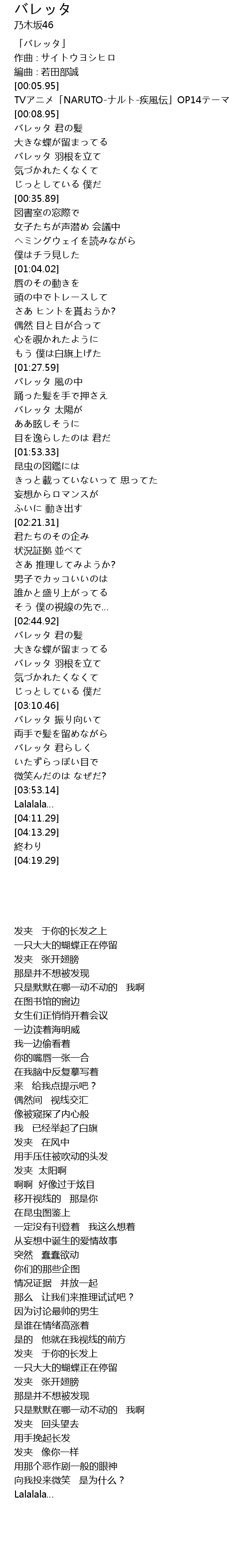 | [00:06.95] | TVアニメ「NARUTO-ナルト-疾風伝」OP14テーマ |