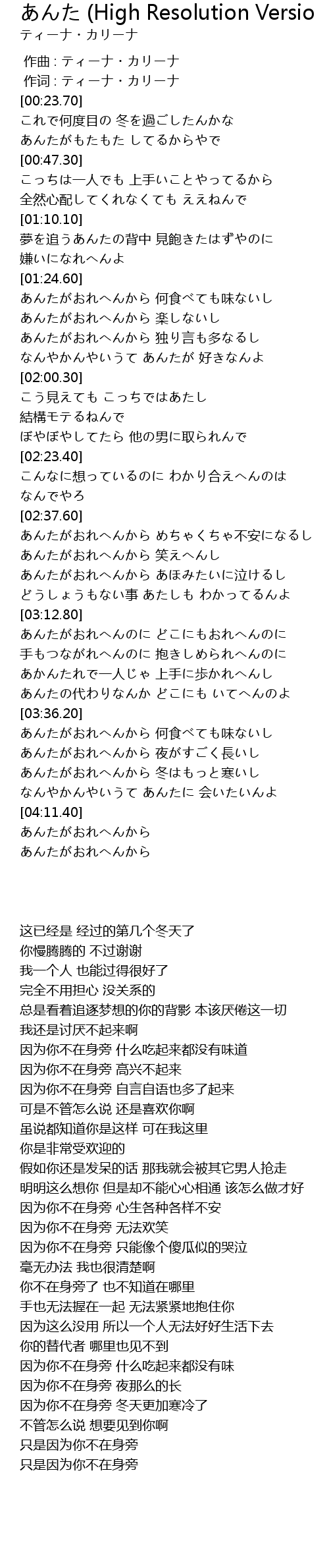 | [03:12.90] | あんたがおれへんのに どこにもおれへんのに |