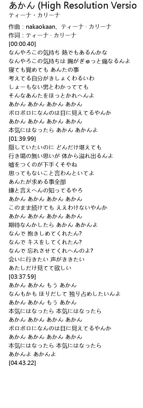 | Song | あかん (High Resolution Versio |
