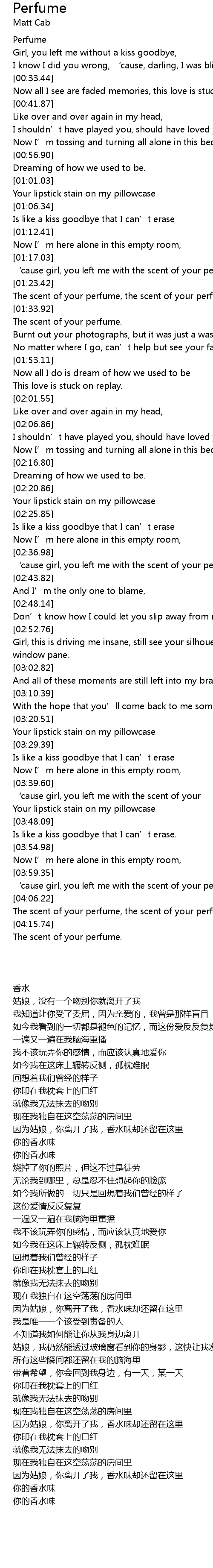 | [02:38.48] | ' cause girl, you left me with the scent of your perfume. |