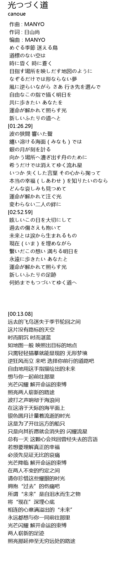 | [02:38.34] | 運命が解かれて注ぐ光 |