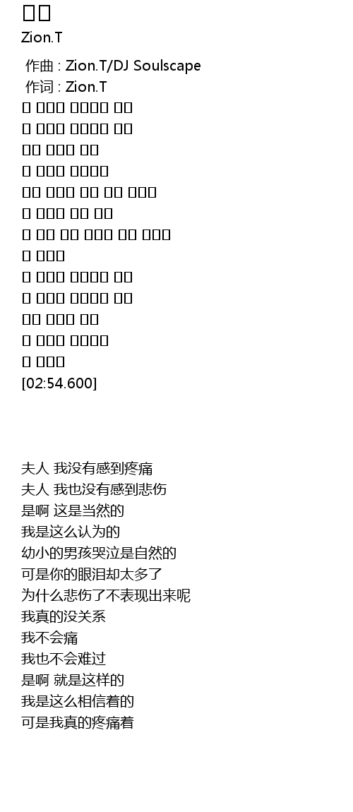 | [00:01.00] | 作词 : Zion.T |