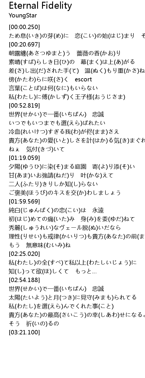 | [02:00.059] | 純白(じゅんぱく)の恋(こい)は 永遠 |