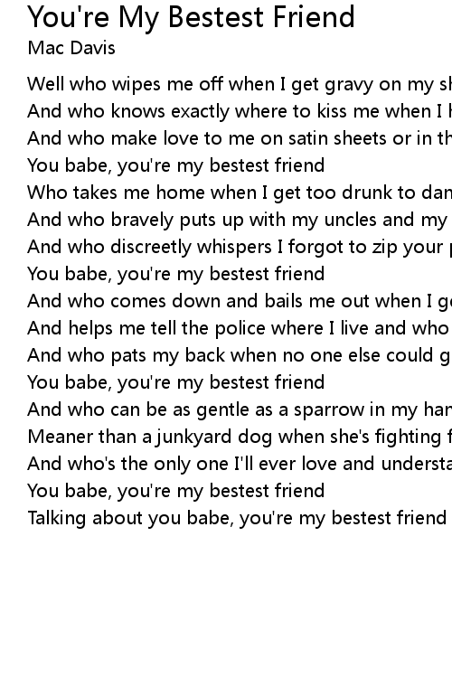 You babe, you're my bestest friend |