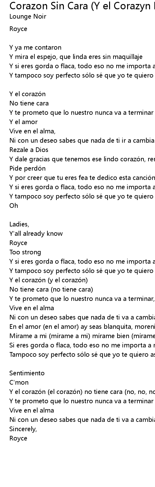 | Y el corazo n el corazo n no tiene cara no, no, no | |