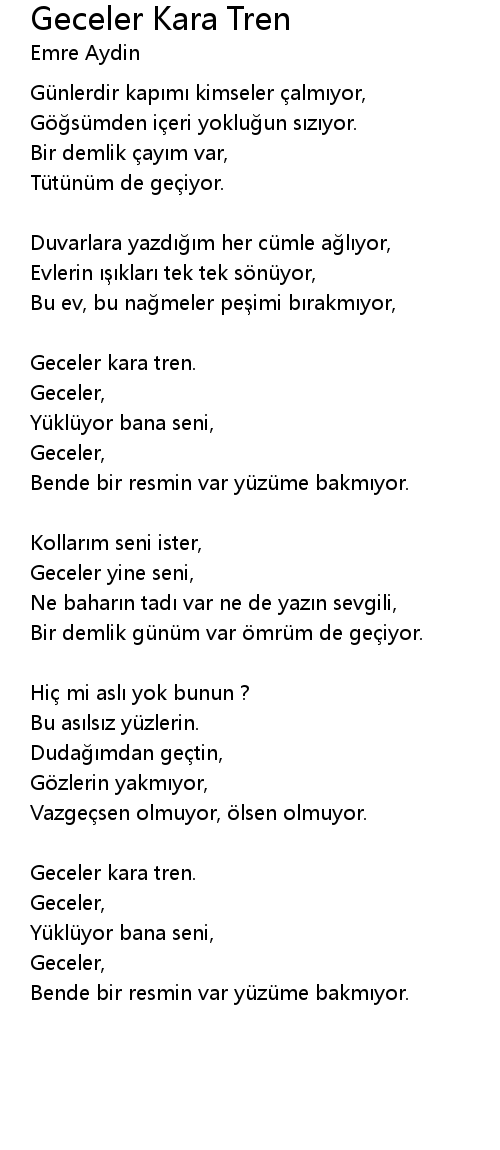 | Duvarlara yazdığım her cümle ağlıyor, | |