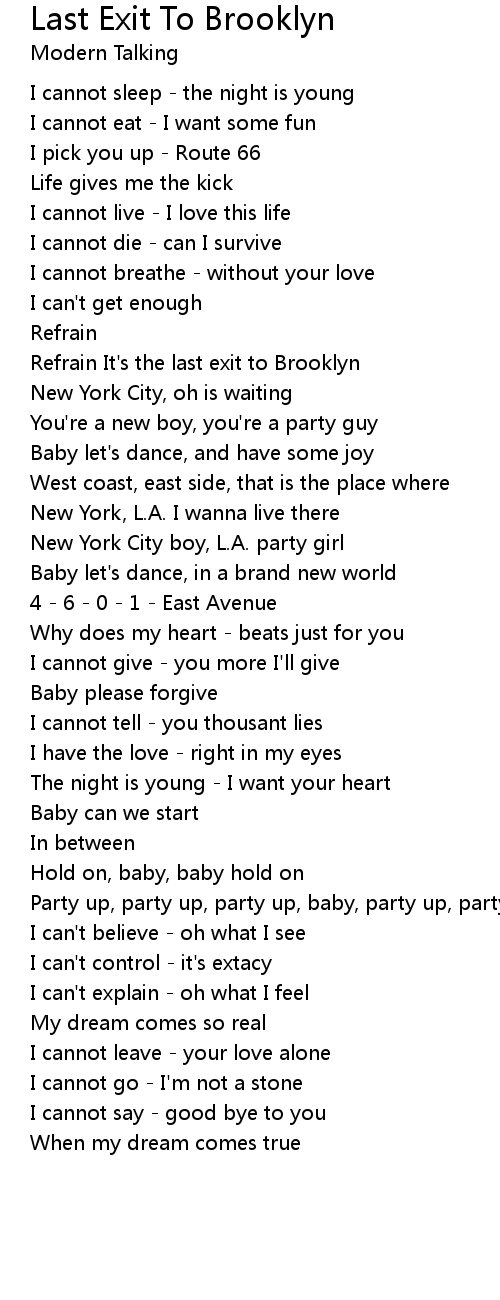 Refrain It's the last exit to Brooklyn |