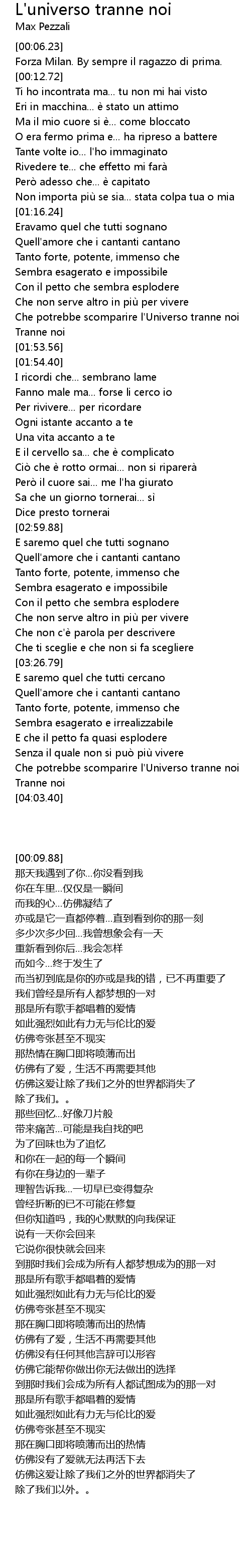 | [01:37.09] | Che potrebbe scomparire l'Universo tranne noi |