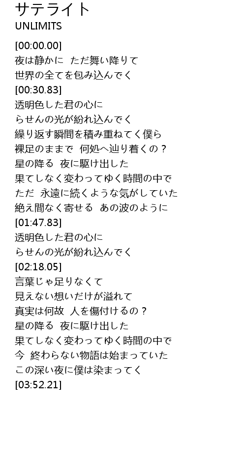 | [00:15.93] | 夜は静かに ただ舞い降りて |
