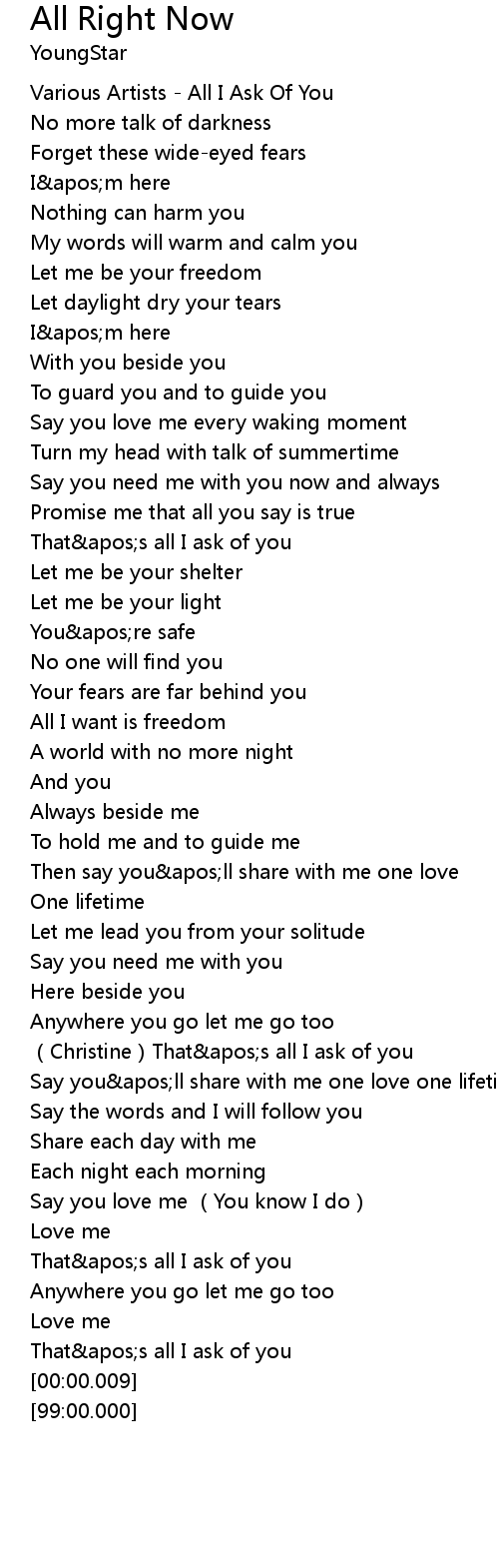 | [00:00.59] | Various Artists All I Ask Of You |