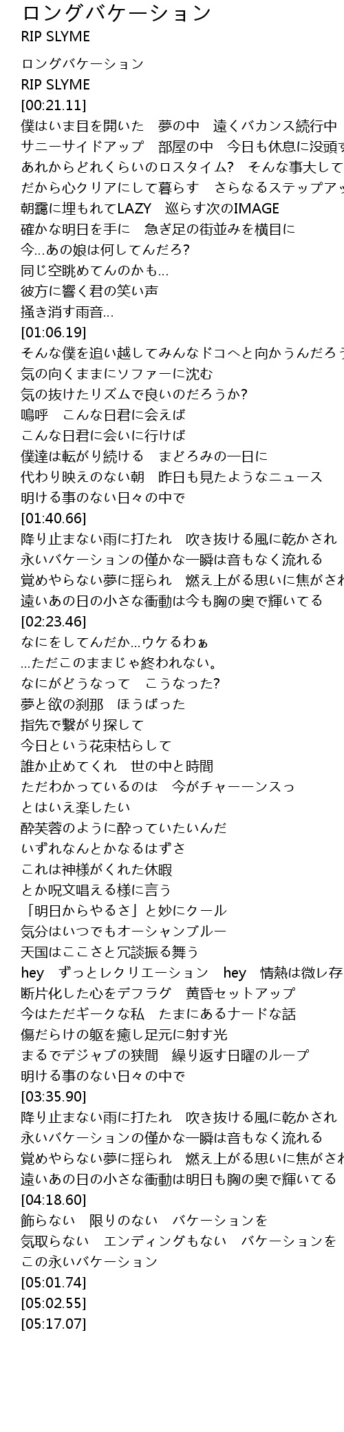 | [01:53.31] | 永いバケーションの僅かな一瞬は音もなく流れる |