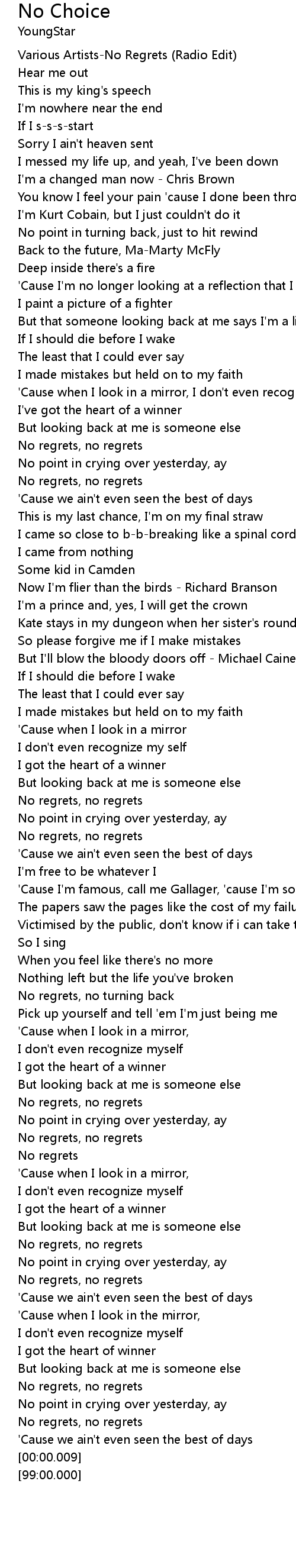| [02:59.78] | No regrets |