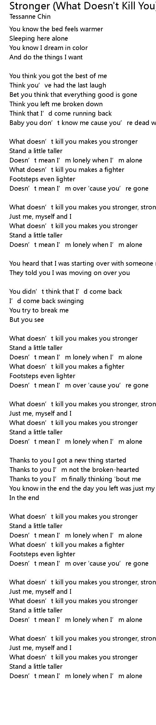 | What doesn' t kill you makes you stronger, stronger | |