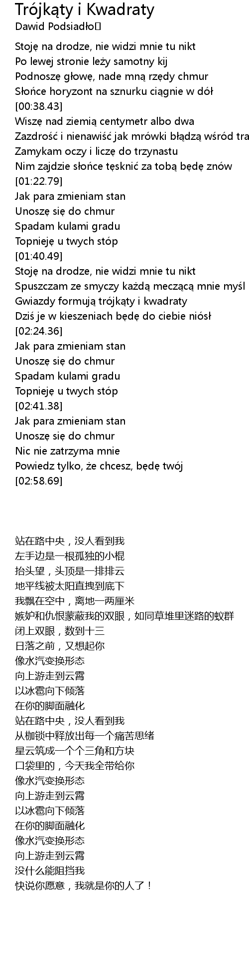 | [02:09.90] | Gwiazdy formuj tró jk ty i kwadraty |