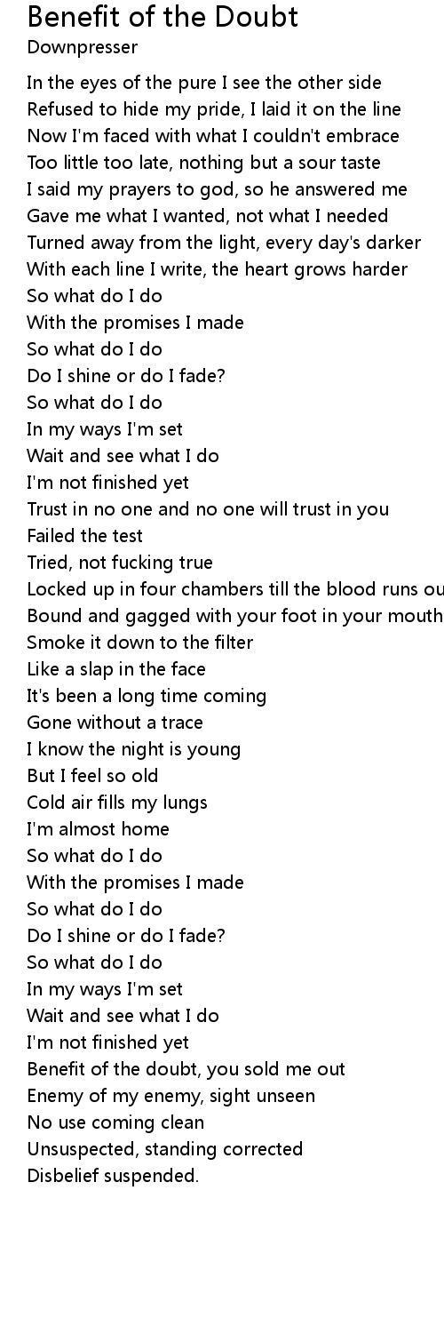 Benefit of the doubt, you sold me out |