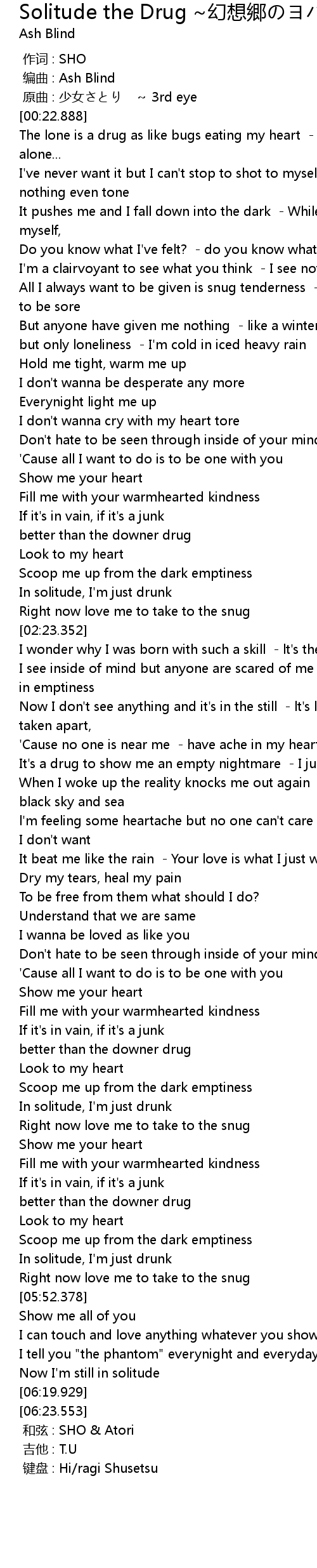 | [00:27.436] | The lone is a drug as like bugs eating my heart - I'm always alone... |