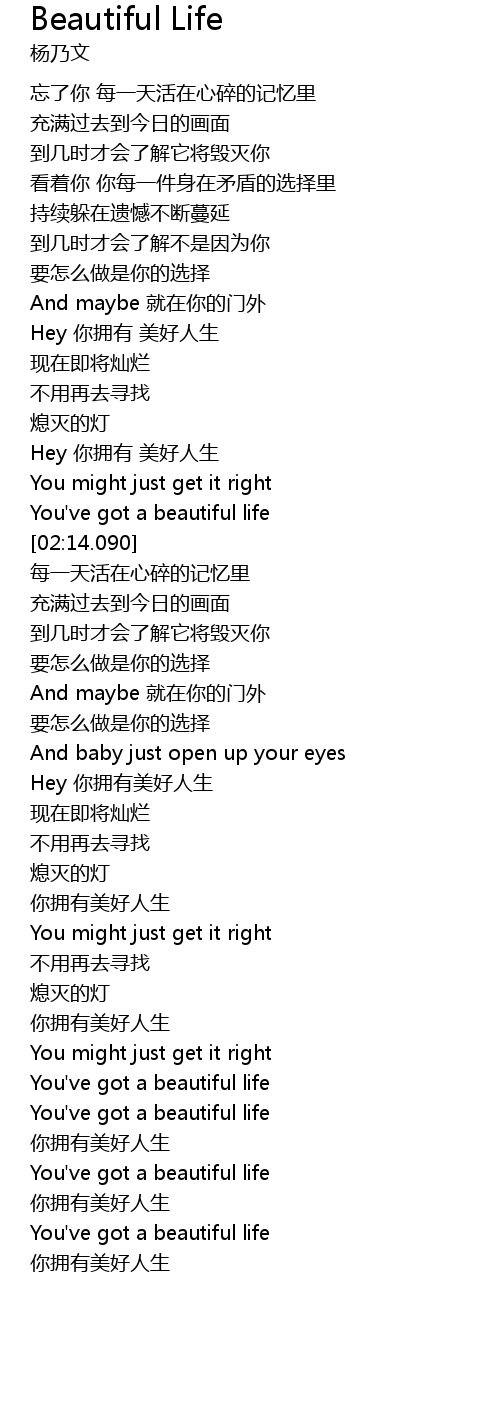 | [02:01.570] | Hey 你拥有 美好人生 |
