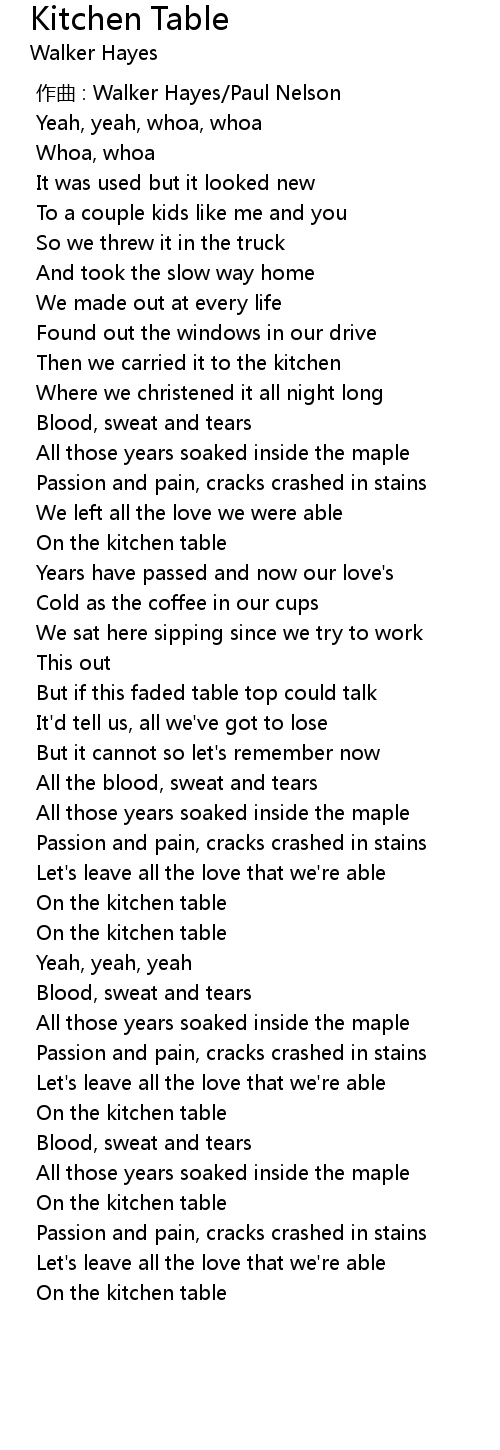 | [00:00.000] | zuò qǔ : Walker Hayes Paul Nelson |