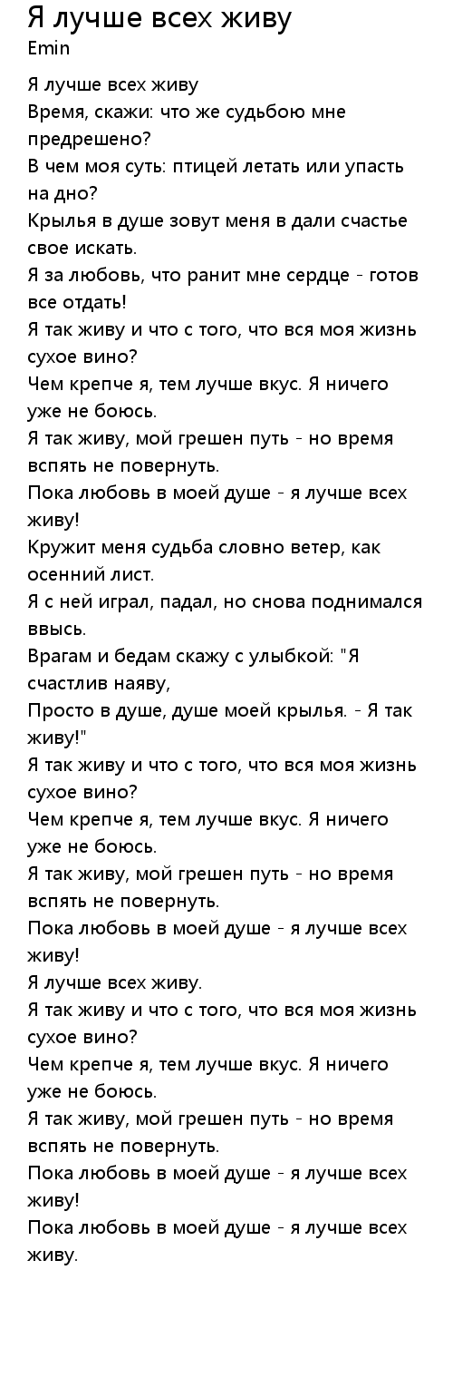 Пока любовь в моей душе - я лучше всех живу. |
