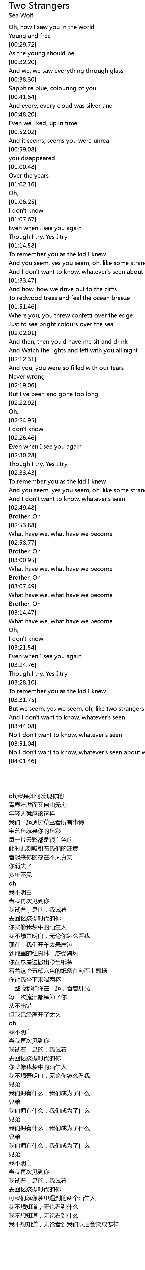 [03:32.56] But we seem, yes we seem, oh, like two strangers that met in a dream