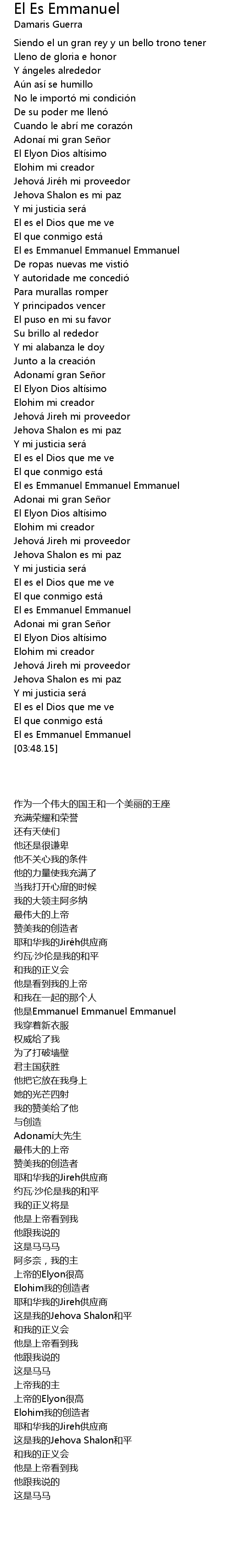 | [02:24.56] | El es Emmanuel Emmanuel Emmanuel |